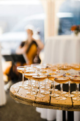Þetta æðislega brúðkaup var fullt af smáatriðum og yndislegum blómailm. Ég held að Ægisgarður hafi aldrei litið svo vel út. Við fórum all inn í liti á þessum sólríka sumardegi með litapalettu sem innihélt gula, bleikan, appelsínugulan og fjólubláan. Það voru borðar í loftinu og blóm, tjald fyrir utan með kampavínsturn, ætum blómum og fallegri klassískri tónlist er fólk gekk í garð. Borðin voru heldur betur skreytt með blómum og fjólubláum sérvéttum ásamt dass af ávöxtum sem ég elska. Ógleymanlegur dagur í alla staði.