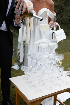 Þegar gestir löbbuðu að salnum tók á móti þeim fallegt veislutjald þar sem hægt var að fá sér fordrykk og nart. Tjaldið var skreitt með fallegum pappa kúlum í loftinu, borð með bleikum dúkum og selfie spegil umvafinn blöðrum. Það iðaði af lífi og góðri tónlist. Gestum var boðið uppá freiðivín og nart meðan það beið eftir brúðhjónunum. Þegar brúðhjónin voru að rúlla upp að salnum var dreift form til gesta full af þurrkuðum blöðum til að kasta yfir brúðhjónin er þau komu. Ég setti einnig upp lítinn kampavínsturn fyrir þau til að hella yfir og þannig hefja veisluna með gestum sínum.